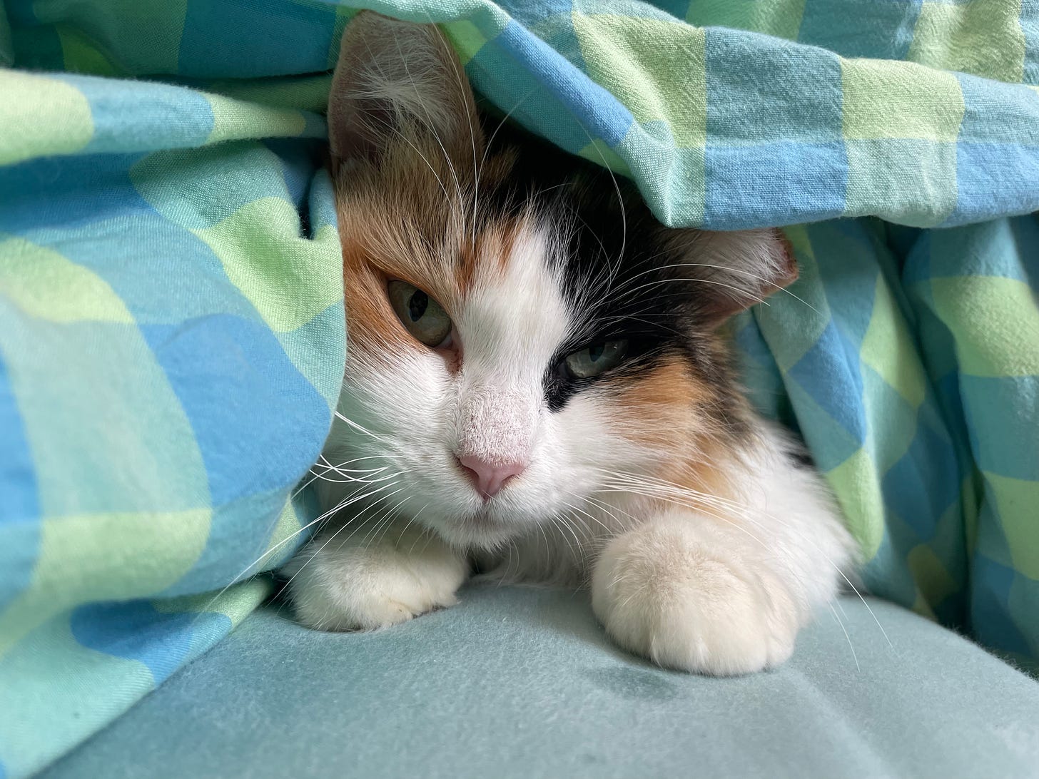 It’s New Year’s Eve-eve and I am sitting in my bed. It’s eight-fifteen at night, and I can hear people outside on the street as they walk by. Dotty1, my new cat, is under the blankets, where she has been all day and night for the past three days.
